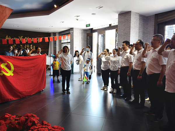 铮铮誓言,见证初心。在新四军第五师历史陈列馆大厅,面向鲜红的中国共产党党旗,公司党委工作部部长杨黎黎同志带领大家重温入党誓词,铿锵有力的誓词声响彻大厅,彰显着掷地有声的承诺,诠释着履职尽责的担当。