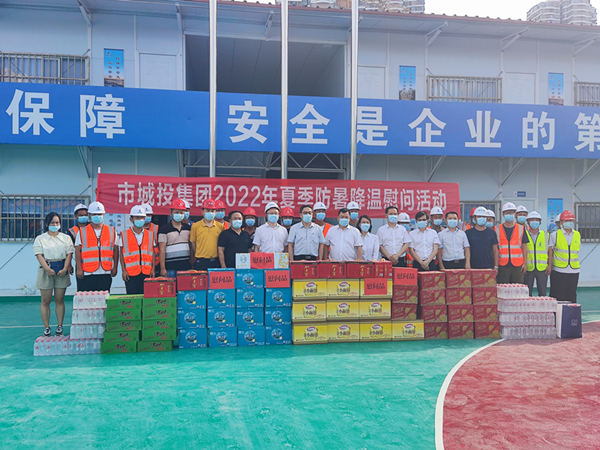 7月12日下午,市城投集团公司总经济师邢耀霖一行来到新建居住项目(国博C4地块)工程总承包(EPC)项目开展送清凉活动。房产集团公司总经理陈峻陪同慰问。